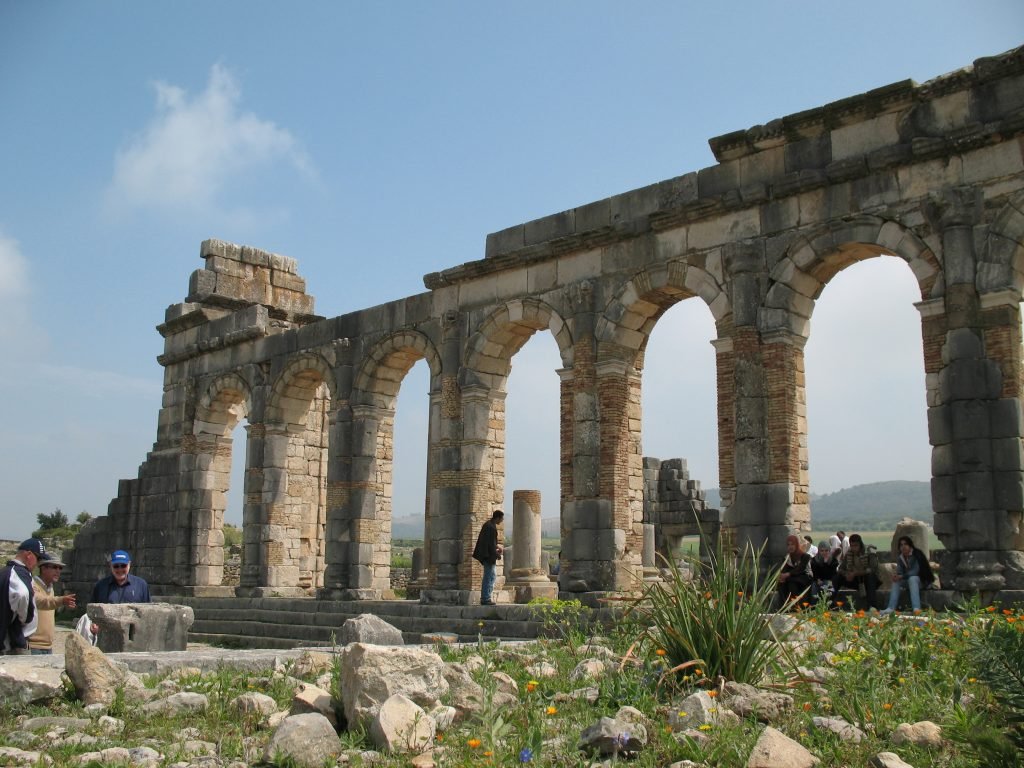 Departure for Meknes, the imperial city of Sultan Moulay Ismail. Discover the Palace of Jamaï, Bab El Mansour, the tomb of Moulay Ismaïl, and the royal stables. Enjoy the big covered market with its mountains of oranges and scented mint. Dinner and overnight in a guesthouse in the heart of the Medina.